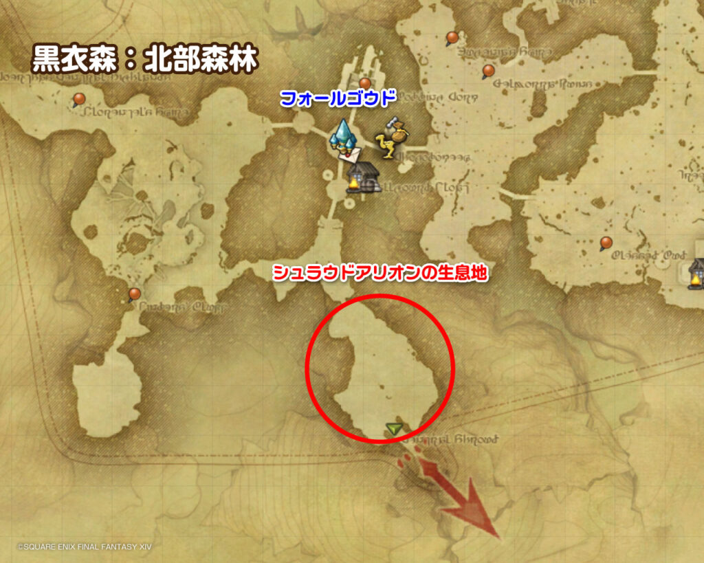フォールゴウドの南、橋を渡った先にシュラウドアリオンが11匹ほど生息しています。