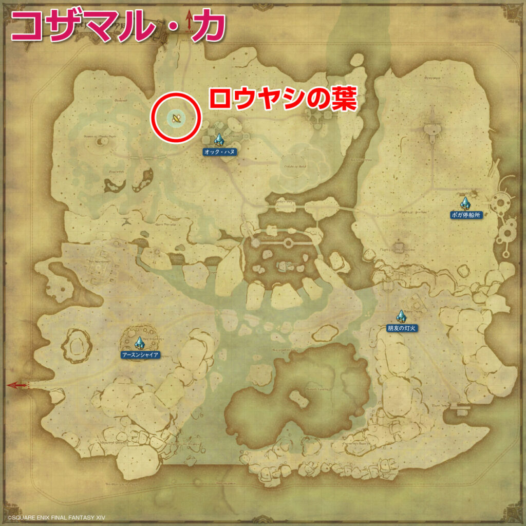 | 採集 クラス | エオルゼア時間 | アイテム名 | 場所 | 最寄エーテライト |