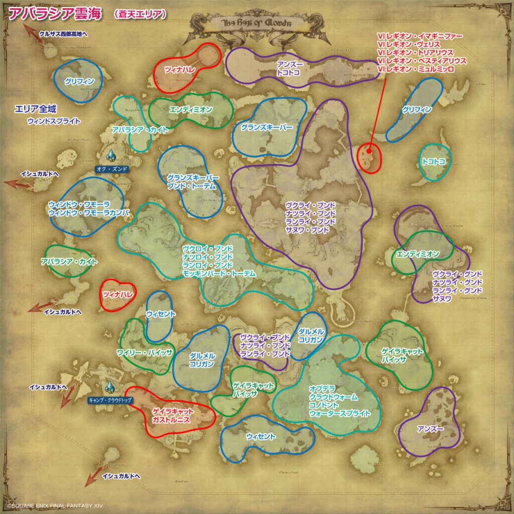 【FF14】アバラシア雲海のモンスター生息MAP | 配置図・ドロップ素材まとめ