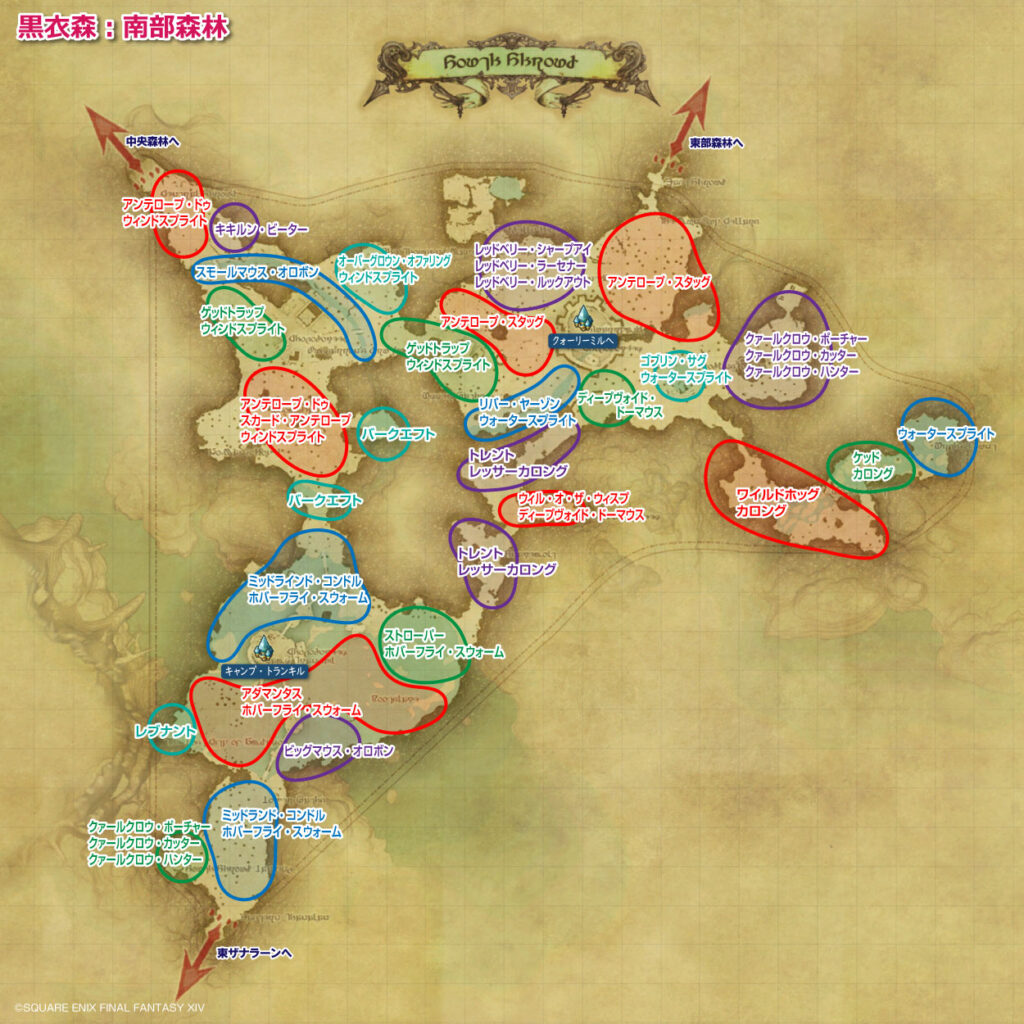 【FF14】黒衣森:南部森林のモンスター生息MAP | 配置図・ドロップ素材まとめ