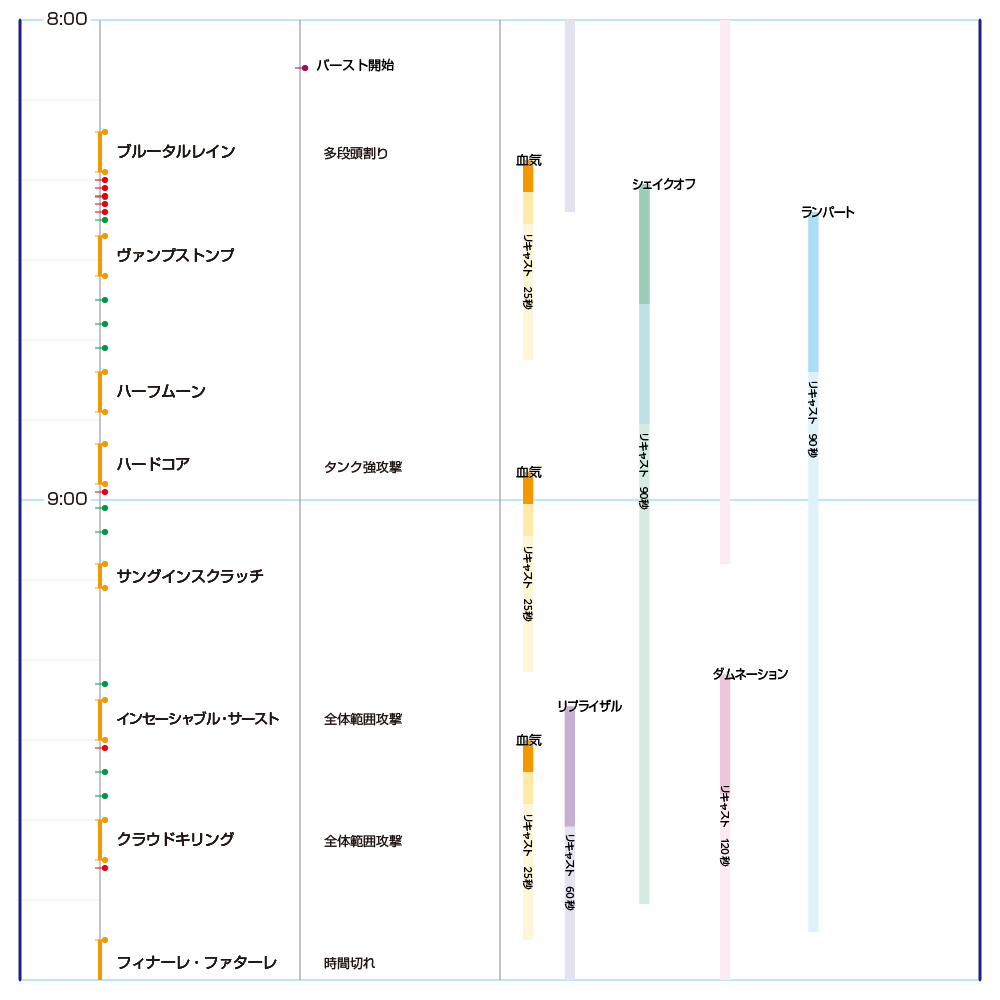アルカディア零式:ヘビー級1層のタイムラインと戦士のバフ回し。